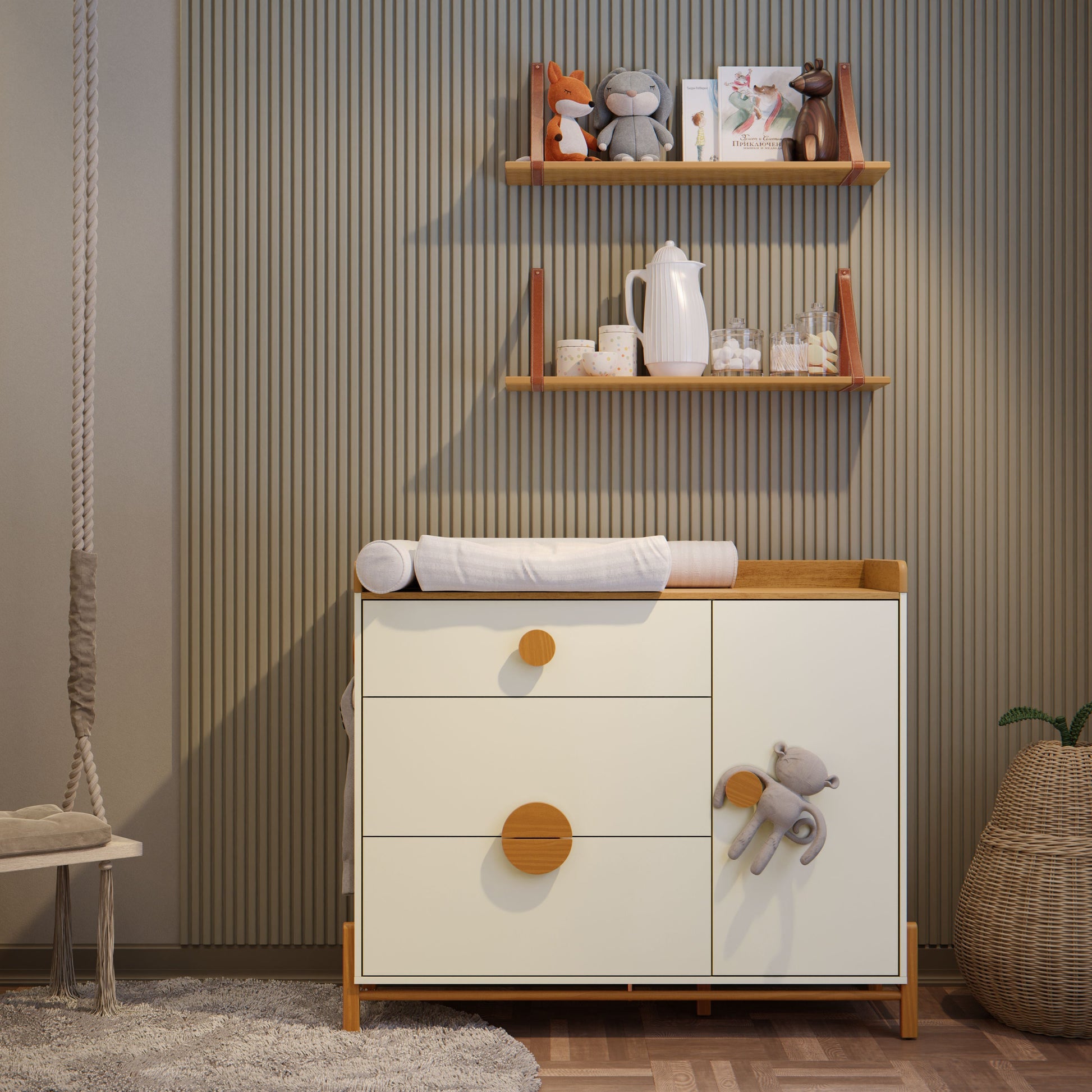 Cómoda Matic Tess Laq. Off White/Freijo/Eco Wood