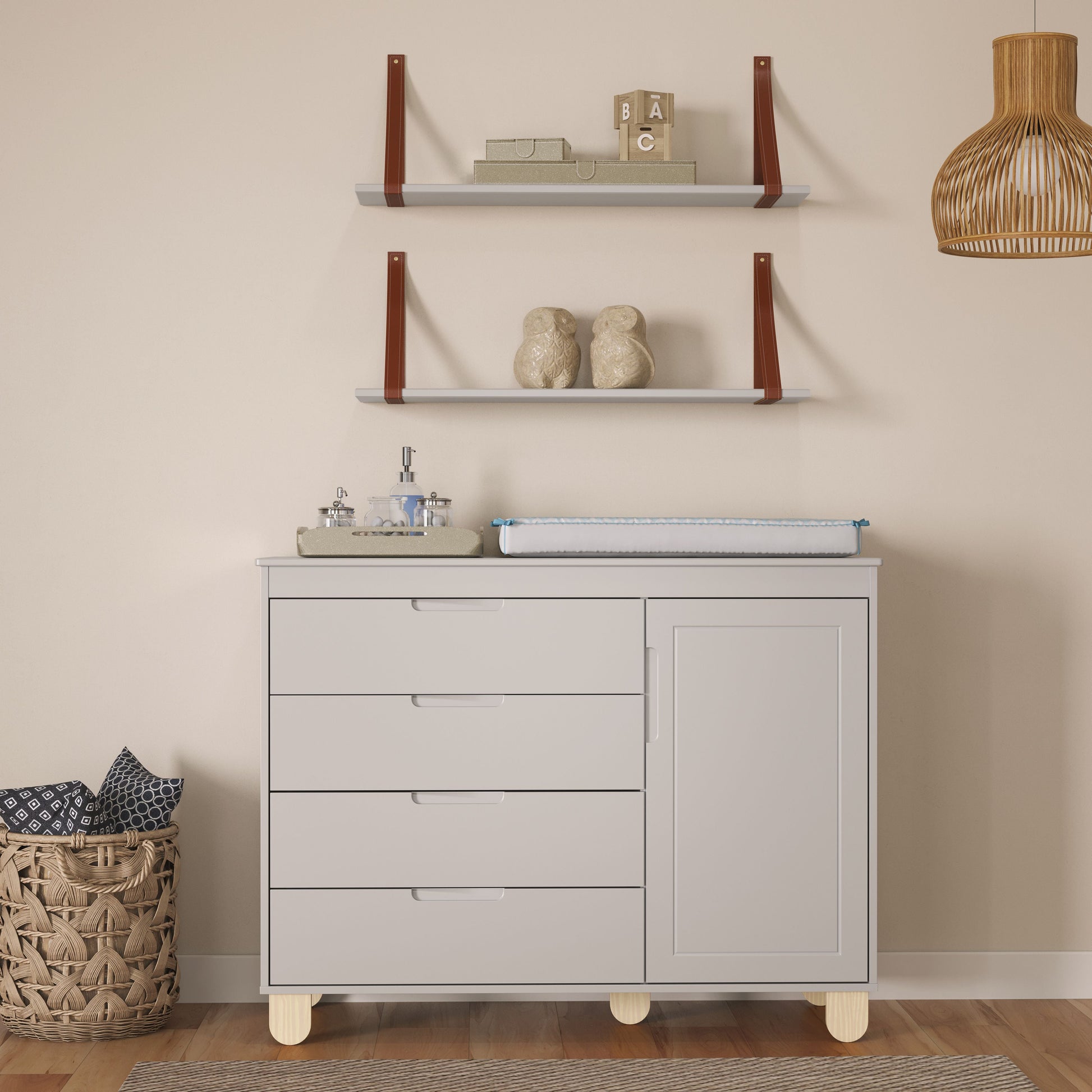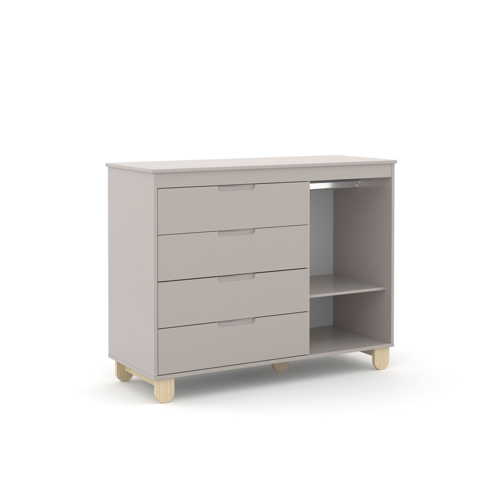CARACTERÍSTICAS- 100% MDF - Guías telescópicas - Mangos mecanizados - Pies de madera - Tubo perchero de aluminio - Puerta con detalle en bajo relieve. - Exclusivo sistema antivuelco