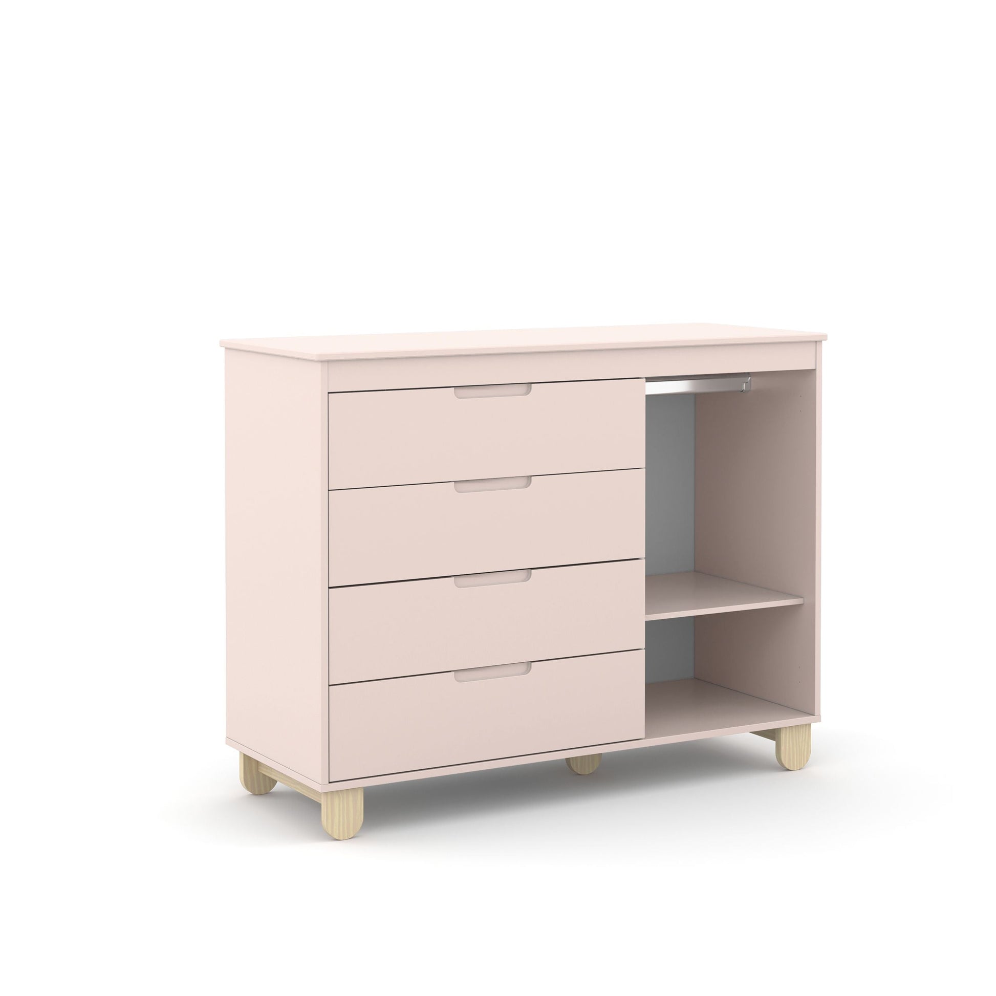 CARACTERÍSTICAS- 100% MDF - Guías telescópicas - Mangos mecanizados - Pies de madera - Tubo perchero de aluminio - Puerta con detalle en bajo relieve. - Exclusivo sistema antivuelco