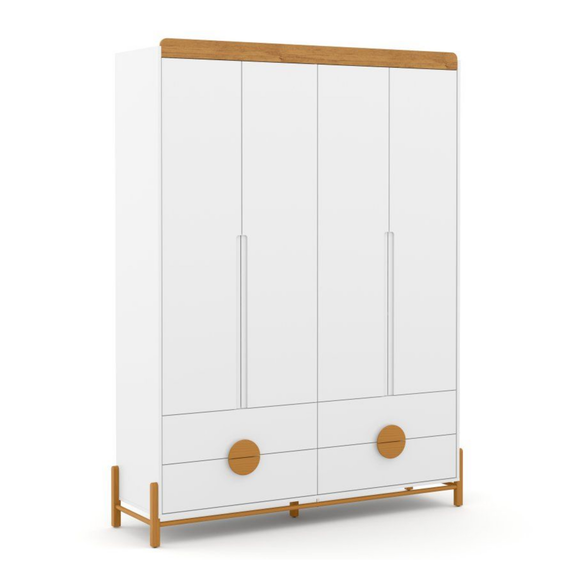 Explora la elegancia y la funcionalidad con el Ropero de 4 Puertas Tess de Matic, una encantadora incorporación a la habitación de tu pequeño. Con detalles de MDF cuidadosamente diseñados y patas y tiradores únicos de madera maciza, este ropero ofrece no sólo un amplio espacio sino también un toque de estilo único.